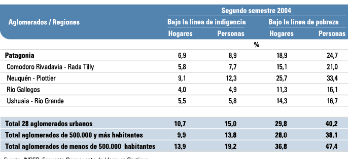 Porcentaje de personas bajo la linea de pobreza e indigencia en aglomerados urbanos y regiones estadísticas. Argentina | 2004.